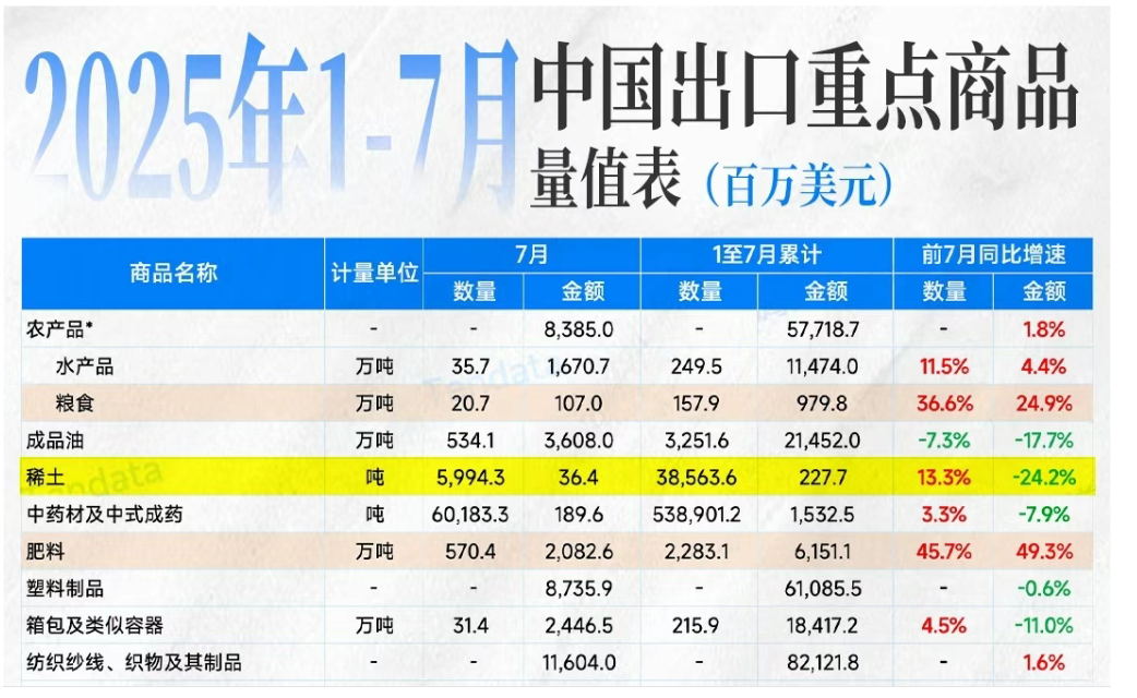 与此同时,传统商品呈现分化:粮食出口量增长36.6%,肥料出口量暴增49.3%,而成品油、稀土出口额则大幅下滑。